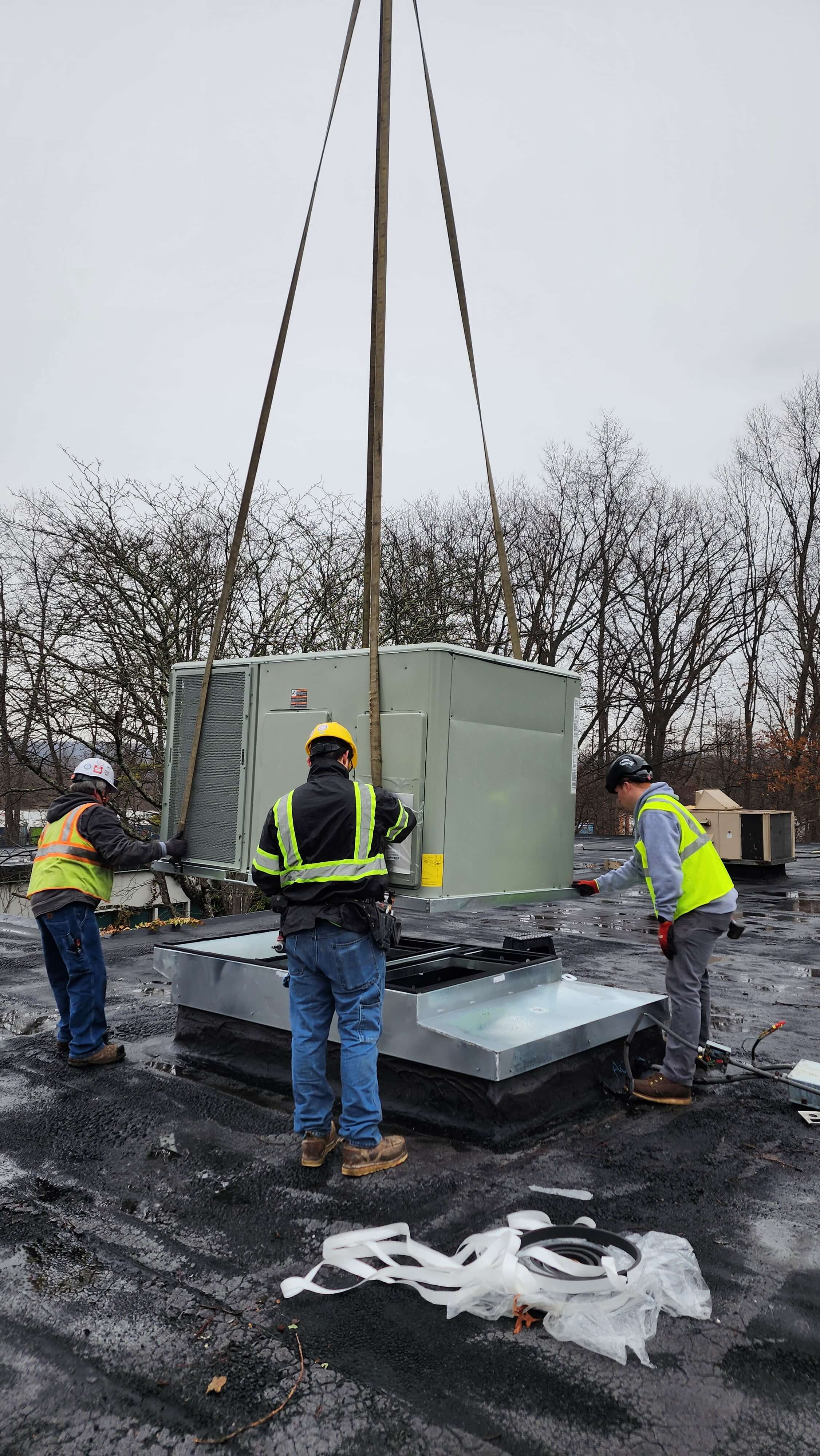 Figure 3: RTU being installed on curb via crane lift.